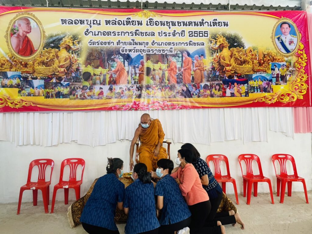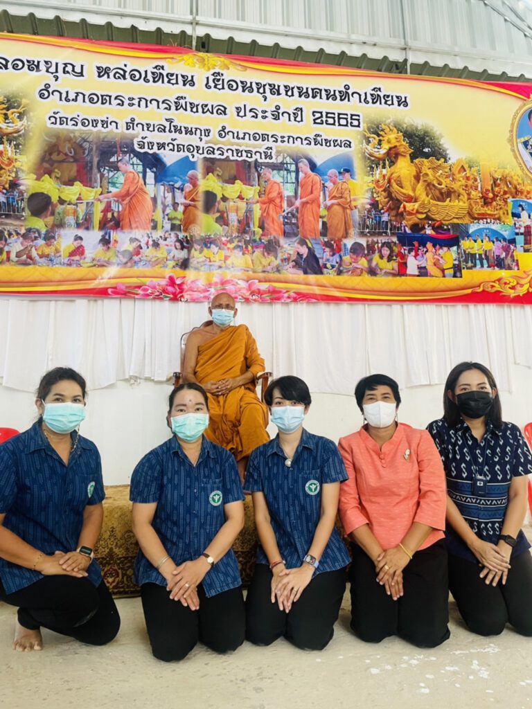 วันที่ 17 มิถุนายน 2565 นายณรงค์ แผลงศร สาธารณสุขอำเภอตระการพืชผล มอบหมายให้นางศรสวรรค์ ชื่นใจ และคณะเข้าร่วมกิจกรรมหลอมบุญ หล่อเทียน เยือนชุมชนคนทำเทียน อำเภอตระการพืชผล พร้อมถวายภัตตาหารเพลแด่พระสงฆ์ ณ วัดร่องข่า ตำบลโนนกุง อำเภอตระการพืชผลจังหวัดอุบลราชธานี