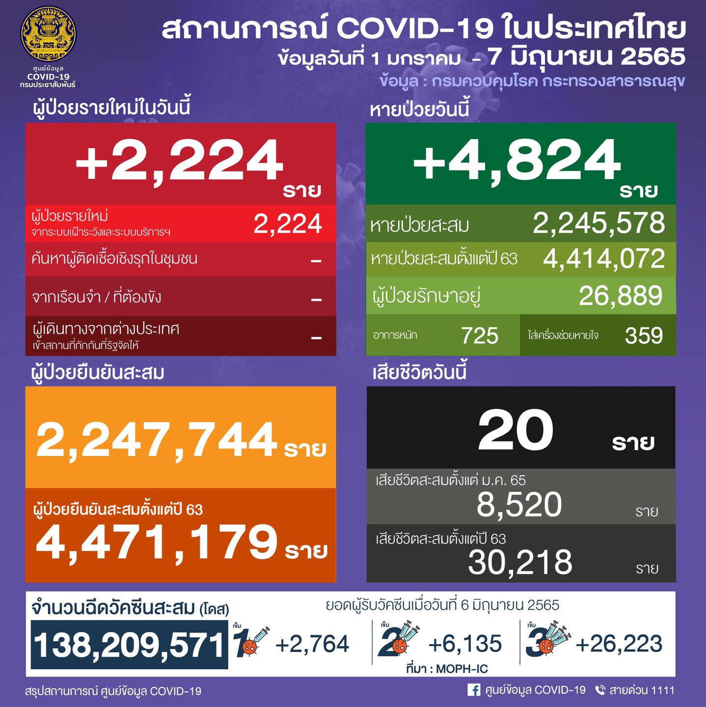 วันที่ 6 มิถุนายน 2565 มีผู้รับการฉีดวัคซีน