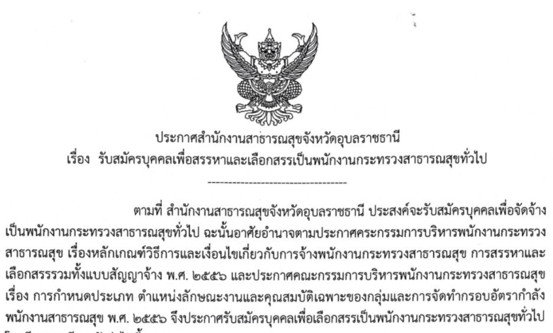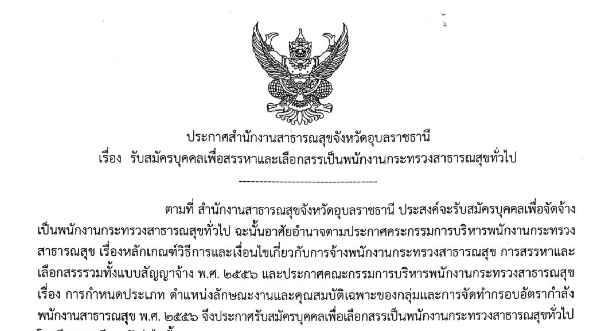 ประกาศคณะกรรมการบริหารพนักงานกระทรวงสาธารณสุข เรื่องการกำหนดประเภท ตำแหน่งลักษณะงานและคุณสมบัติเฉพาะของกลุ่มและการจัดทำกรอบอัตรากำลังพนักงานกระทรวงสาธารณสุข พ.ศ.2556 จึงประกาศรับสมัครบุคคลเพื่อเลือกสรรหาเป็นพนักงานกระทรวงสาธารณสุขทั่วไป โดยมีรายละเอียดตามเอกสารแนบท้ายนี้