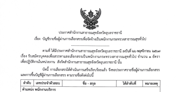 ประกาศบัญชีรายชื่อผู้ผ่านการเลือกสรร พกส2ดาวน์โหลด