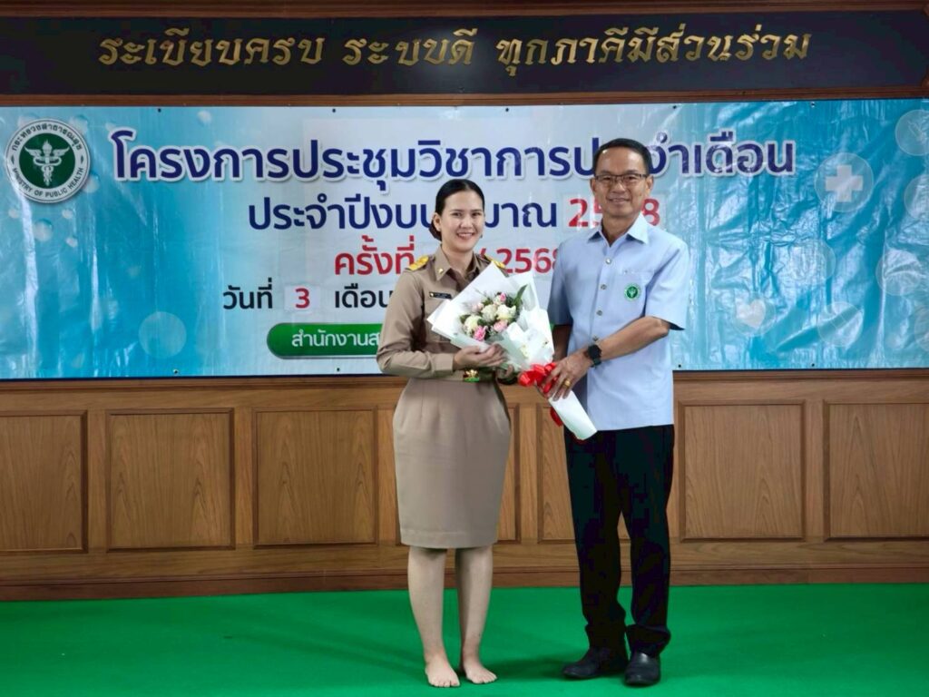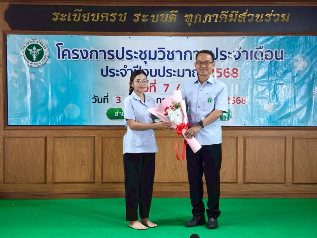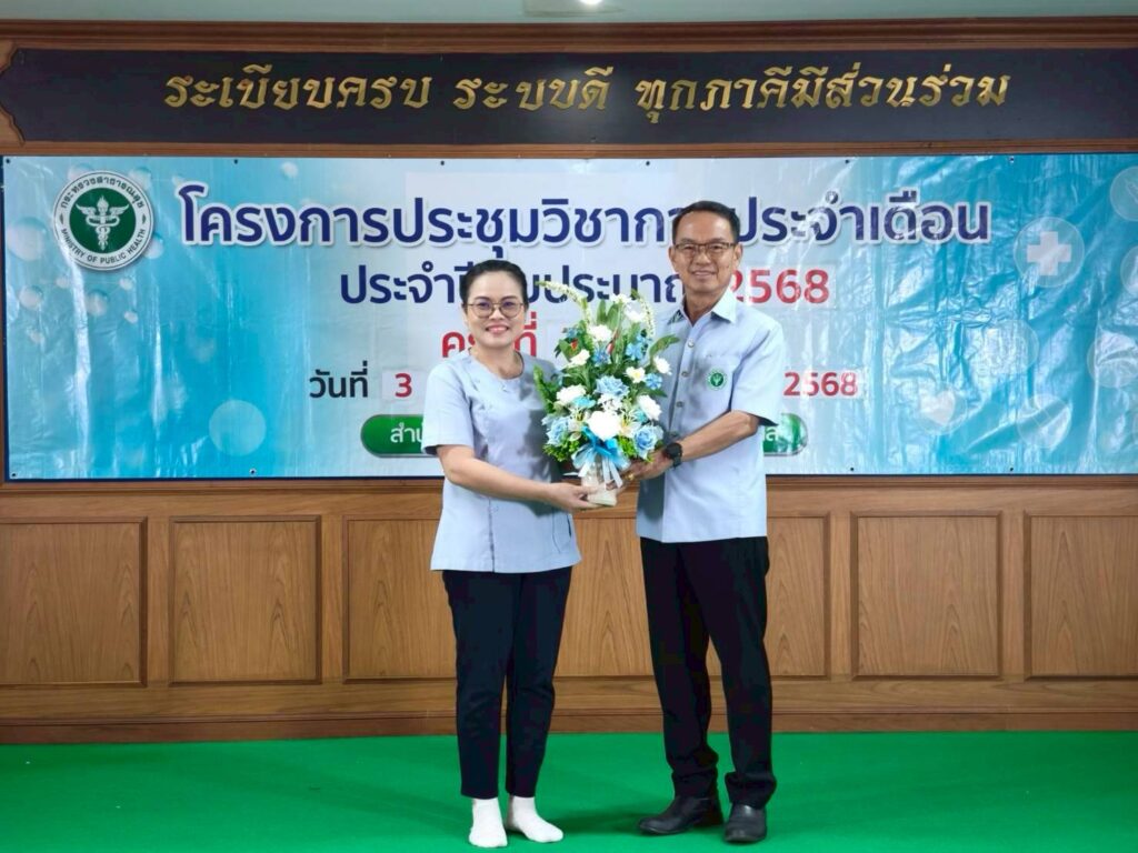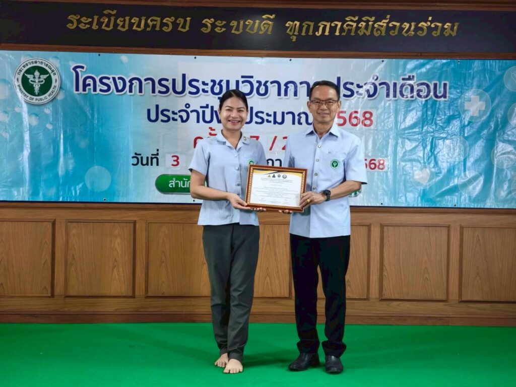 4. แสดงความยินดีกับนางธิรสิริกาญน์ สุริวรรณ์ พยาบาลวิชาชีพชำนาญการ รพสต.ห้วยฝ้ายพัฒนา ได้รับโลห์ประกาศเกียรติคุณ ศิษย์เก่าพยาบาลดีเด่นด้านบริการ จาก วพบ.สปส.อบ.